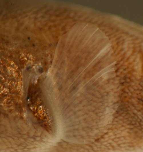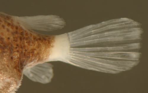 of the dorsal caudal peduncle in smaller larvae