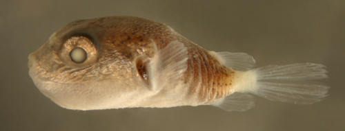 Puffer with modal fin rays D-8 A-7. Larvae with